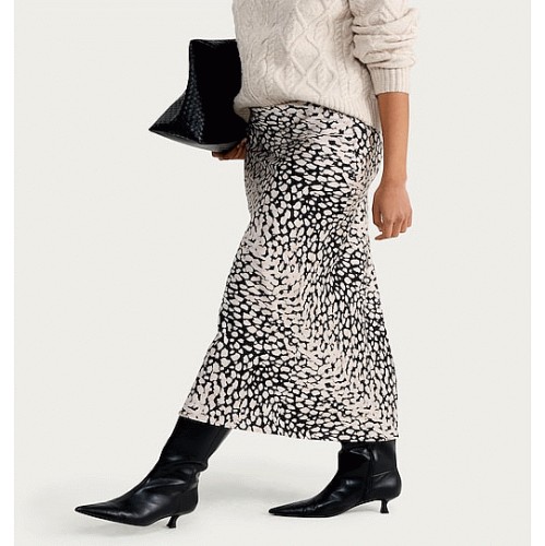 Satin Abstract Print Midi Skirt in Multi Black White