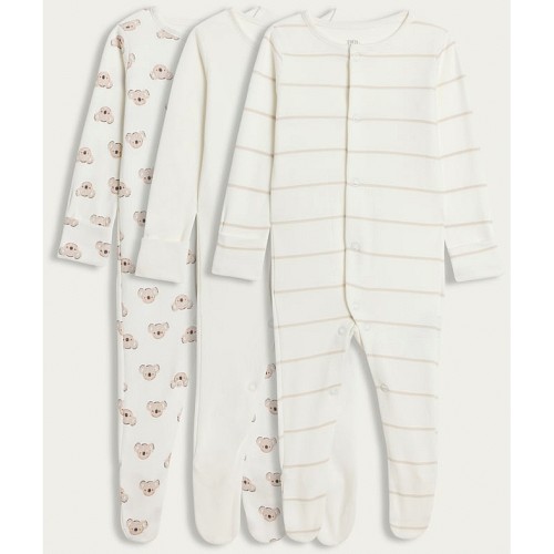 3-Pack Pure Cotton Koala Print Long Sleeved Sleepsuits in White