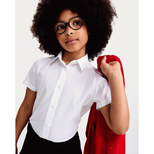 F&F School Girls 3-Pack Slim Fit Short Sleeved Shirts in White
