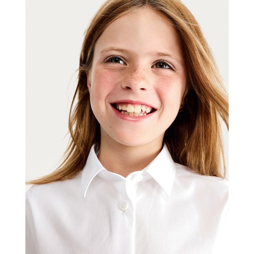 F&F School Girls 3-Pack Cotton Rich Skinny Fit Long Sleeved Shirts in White