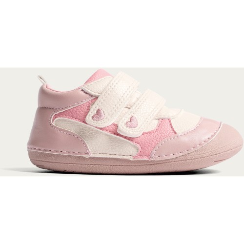Heart Detail Strap Fastening Pre Walker Shoes in Pink