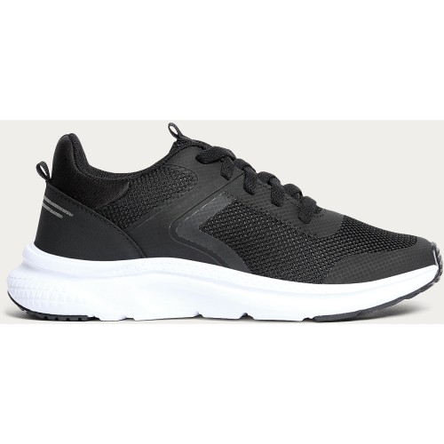 School Boys Mesh Panel Lace-Up Trainers in Black