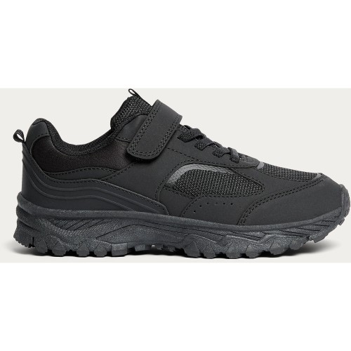 School Boys Mesh Panel Lace-Up Trainers in Black