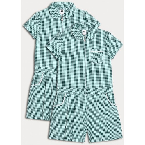 F&F School Girls 2-Pack Gingham Short Sleeved Playsuits in Green