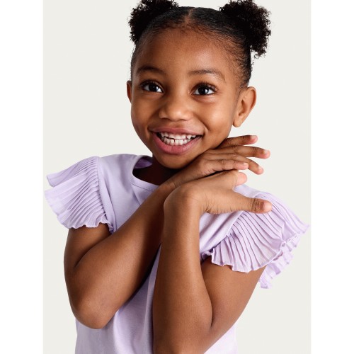 F&F Girls 2-Pack Pure Cotton Pleated Short Sleeved Tops in Lilac