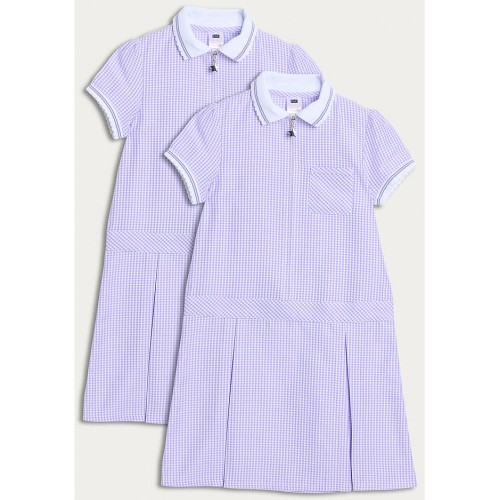 F&F School Girls 2-Pack Cotton Rich Gingham Short Sleeved Dresses in Lilac