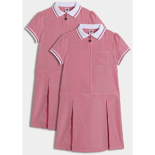 F&F School Girls 2-Pack Gingham Short Sleeved Dresses in Red