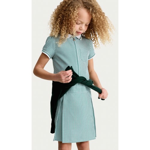 F&F School Girls 2-Pack Cotton Rich Gingham Short Sleeved Dresses in Green