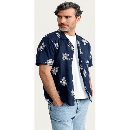 The F&F Edit Cotton Rich Floral Embroidered Short Sleeved Shirt in Navy