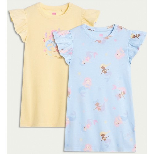 Girls 2-Pack Mermaid Print Nightdresses in Yellow
