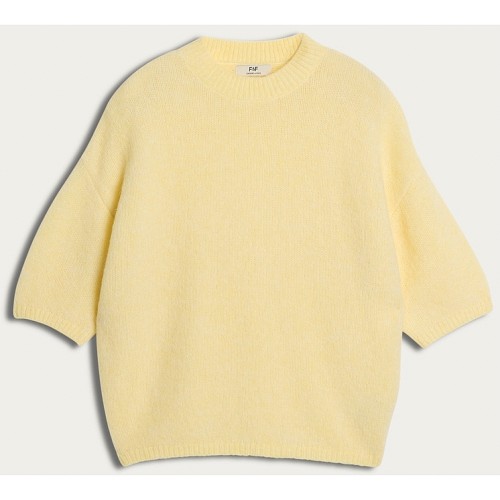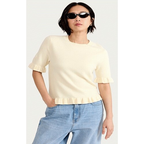 Ruffle Trim Short Sleeved Knitted Top in Yellow