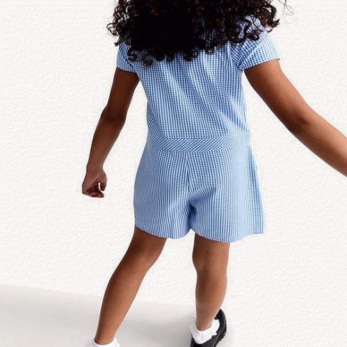 F&F School Girls 2-Pack Gingham Short Sleeved Playsuits in Blue