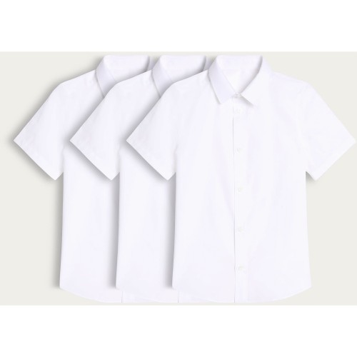 F&F School Boys 3-Pack Regular Fit Short Sleeved Shirts in White