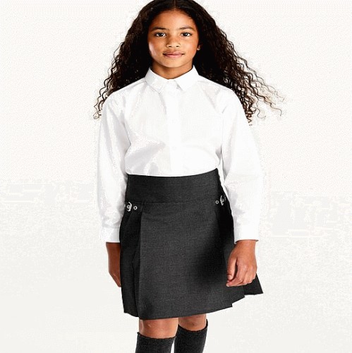F&F School Girls 3-Pack Cotton Blend Generous Fit Long Sleeved Shirts in White
