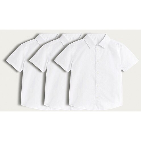 F&F School Girls 3-Pack Cotton Blend Regular Fit Short Sleeved Shirts in White