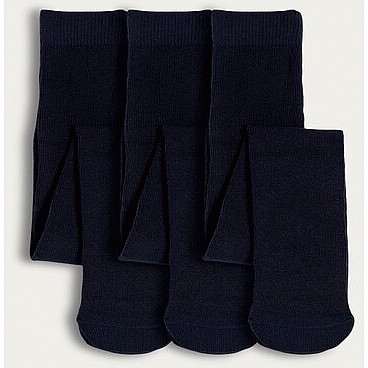 School Girls 3-Pack Cotton Rich Tights in Navy
