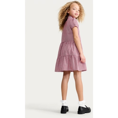 F&F School Girls Cotton Rich Gingham Tiered Dress in Red