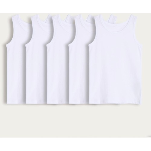 F&F School Girls 5-Pack Pure Cotton Vests in White