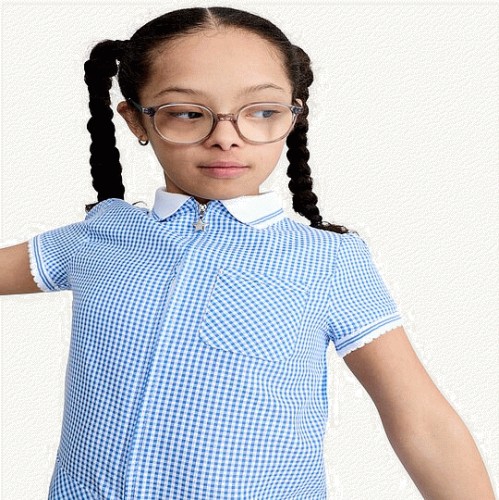 F&F School Girls Cotton Rich 2 in 1 Gingham Polo Dress in Blue