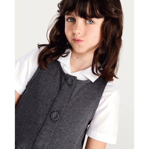 F&F School Girls Cotton Rich Button Through Pinafore in Grey