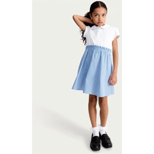 F&F School Girls Cotton Rich 2 in 1 Gingham Polo Dress in Blue