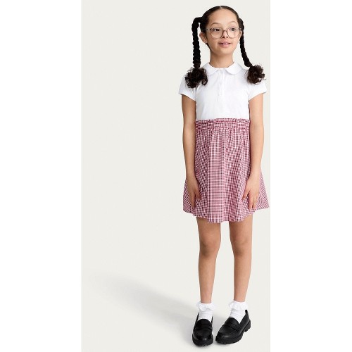 F&F School Girls Cotton Rich 2 in 1 Gingham Polo Dress in Red