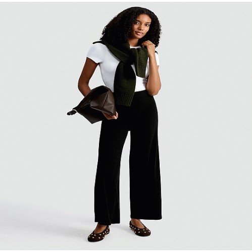 Cotton Blend Ribbed Wide Leg Trousers in Black