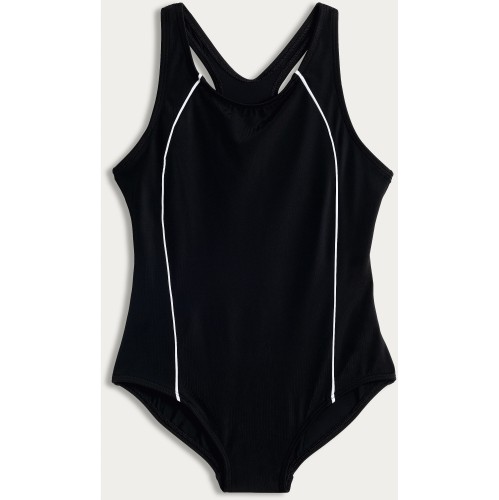 F&F Girls Contrast Trim Racerback Swimsuit in Black