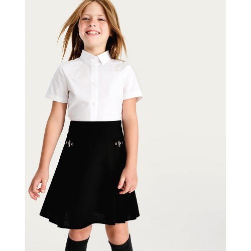F&F School Girls Cotton Rich Bow Detail Pleated Skirt in Grey