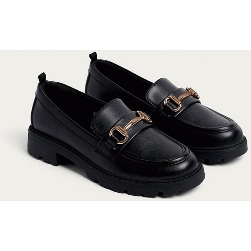 School Girls Gold Trim Loafers in Black