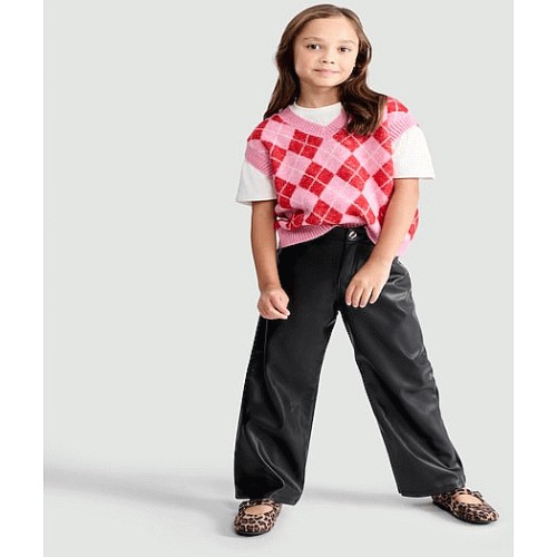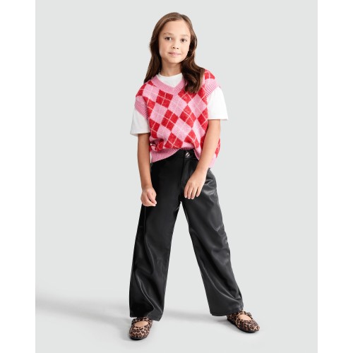 F&F Girls Faux Leather Wide Leg Trousers in Black