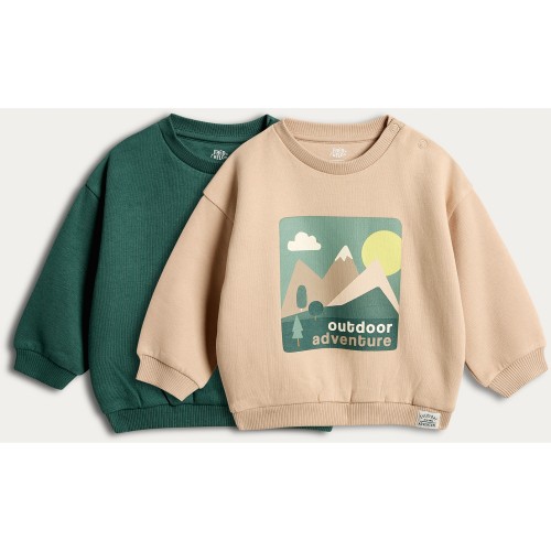 2-Pack Cotton Rich Adventure Sweatshirts in Tan