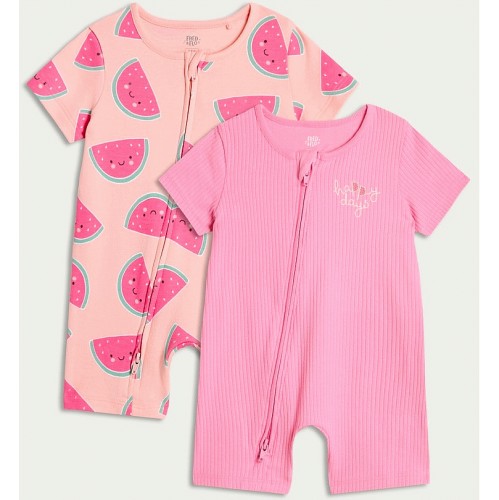 2-Pack Watermelon Print Short Sleeved Rompers in Pink