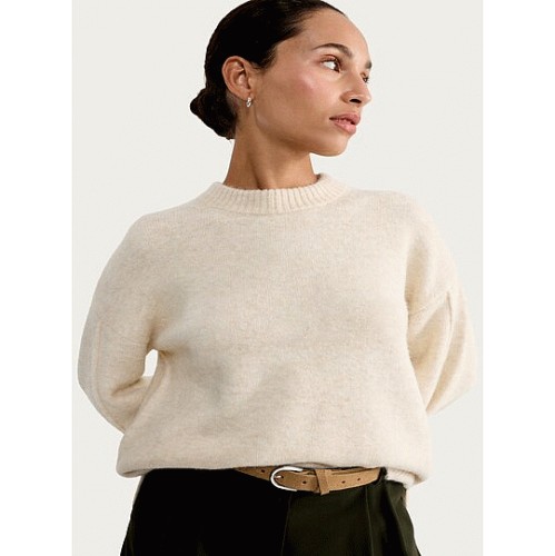 Chenille Cable Knit Crew Neck Jumper in Cream