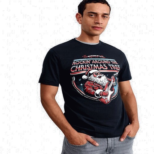 Pure Cotton Rockin' Around the Christmas Tree T-Shirt in Navy