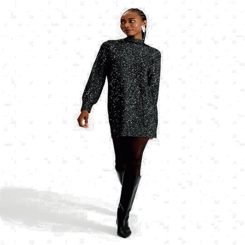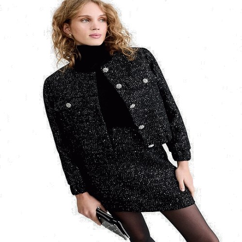 Boucle Sequin Embellished Button Front Co-ord Jacket in Black