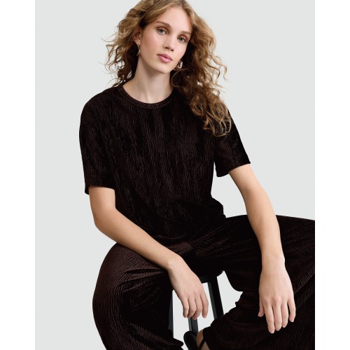 Velvet Textured Short Sleeved Co-ord Top in Brown