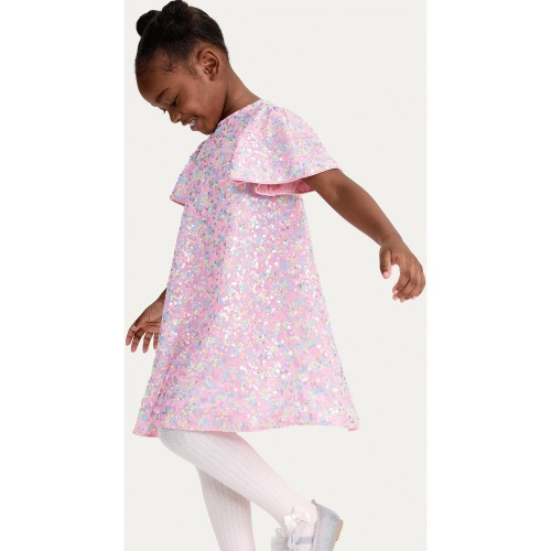 F&F Girls Sequin Embellished Short Sleeved Dress in Multi