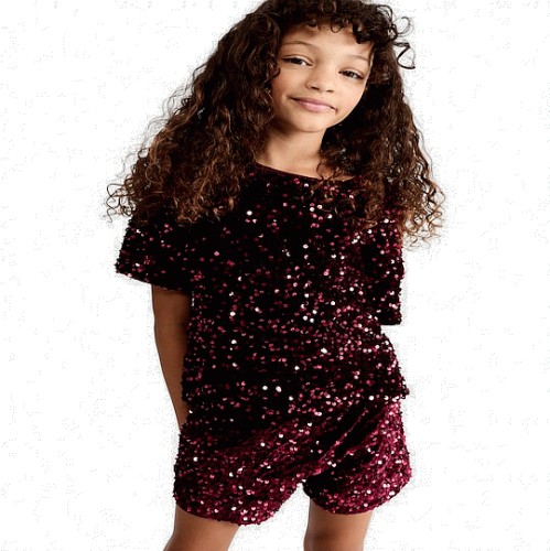 F&F Girls Sequin T-Shirt and Shorts Set in Burgundy