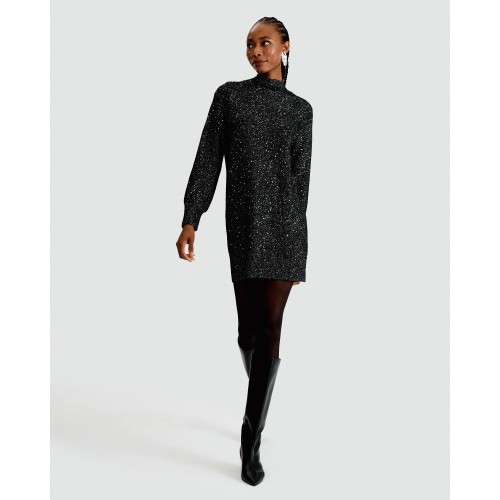 F&F Sequin Hem V Neck Sleeveless Dress in Black