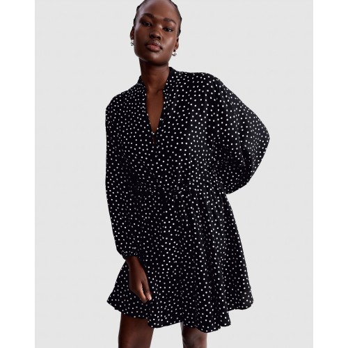 F&F Shirred Polka Dot Print Blouse in Multi Black White