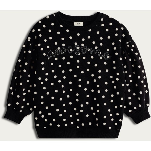 F&F Girls Cotton Rich Polka Dot Awesome Slogan Sweatshirt in Multi Black White
