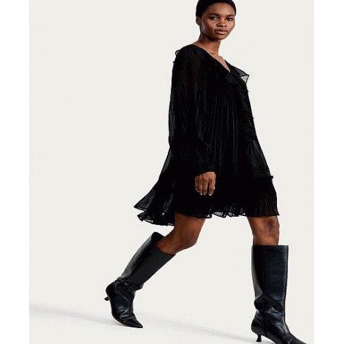 Chiffon Ruffled Pleated Mini Dress in Black