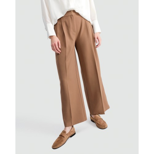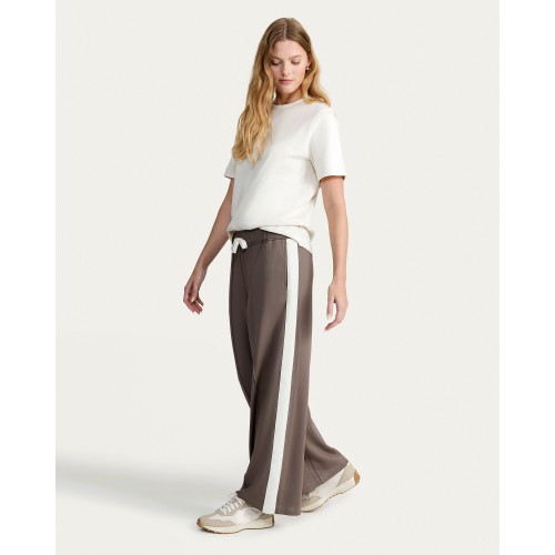 Ponte Side Stripe Wide Leg Trousers in Tan