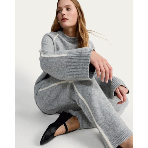 Knitted Side Stripe Wide Leg Co-ord Trousers in Grey