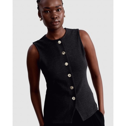 Sleeveless Button Up Waistcoat in Black