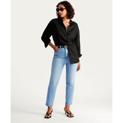 F&F High Rise Slim Ankle Grazer Jeans in Black