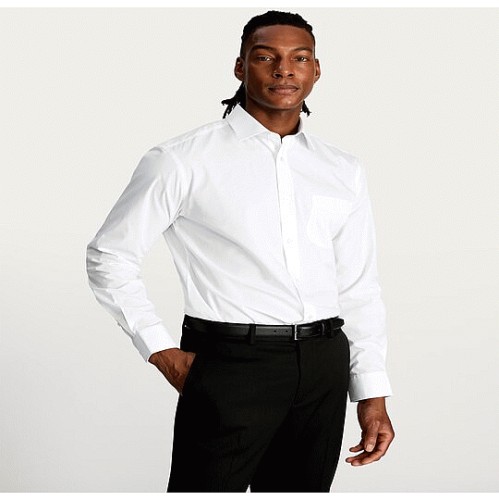 Regular Fit Easy Iron Single Cuff Long Sleeve Smart Shirt in White