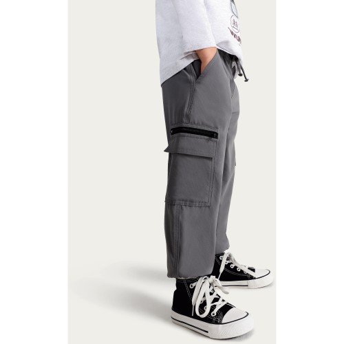 F&F Boys Cotton Rich Cuffed Fit Cargo Trousers in Stone