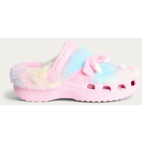 Girls Faux Fur Lined Slip On Unicorn Clogs in Multi
